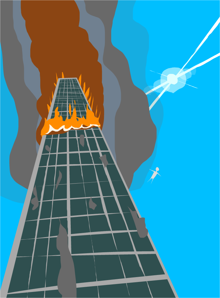 Two people wave to each other, almost as if saying goodbye...
