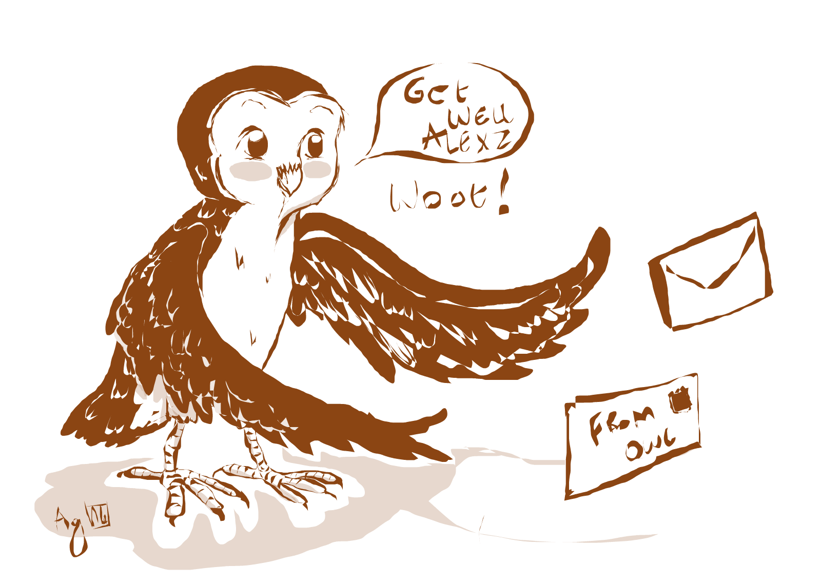 Alexz is a little girl that has a terrible infection in her pelvis. She has had 2 surgeries in 3 days to try to remove it from her bones and muscles. She loves to dance, and right now, she can't even walk. Alexz loves owls. Lets all draw her an owl to cheer her up. And say a prayer that she's up and dancing soon. Thanks!!!! <3