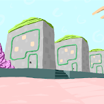 Tried a style with non-saturated colors and no lines. Means of perspective are used to provide the experience of an inhabitant but used incomplete (e. g. not much color perspective) - aiming for an pattern-filled area rather than for illusion of space.