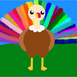 Wow, this turkey is sporting a beautiful neon head-dress. Very cool, Shelly. I like how you dotted the colors in. :)