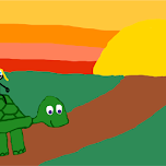 Riding a turtle into the sunset.
