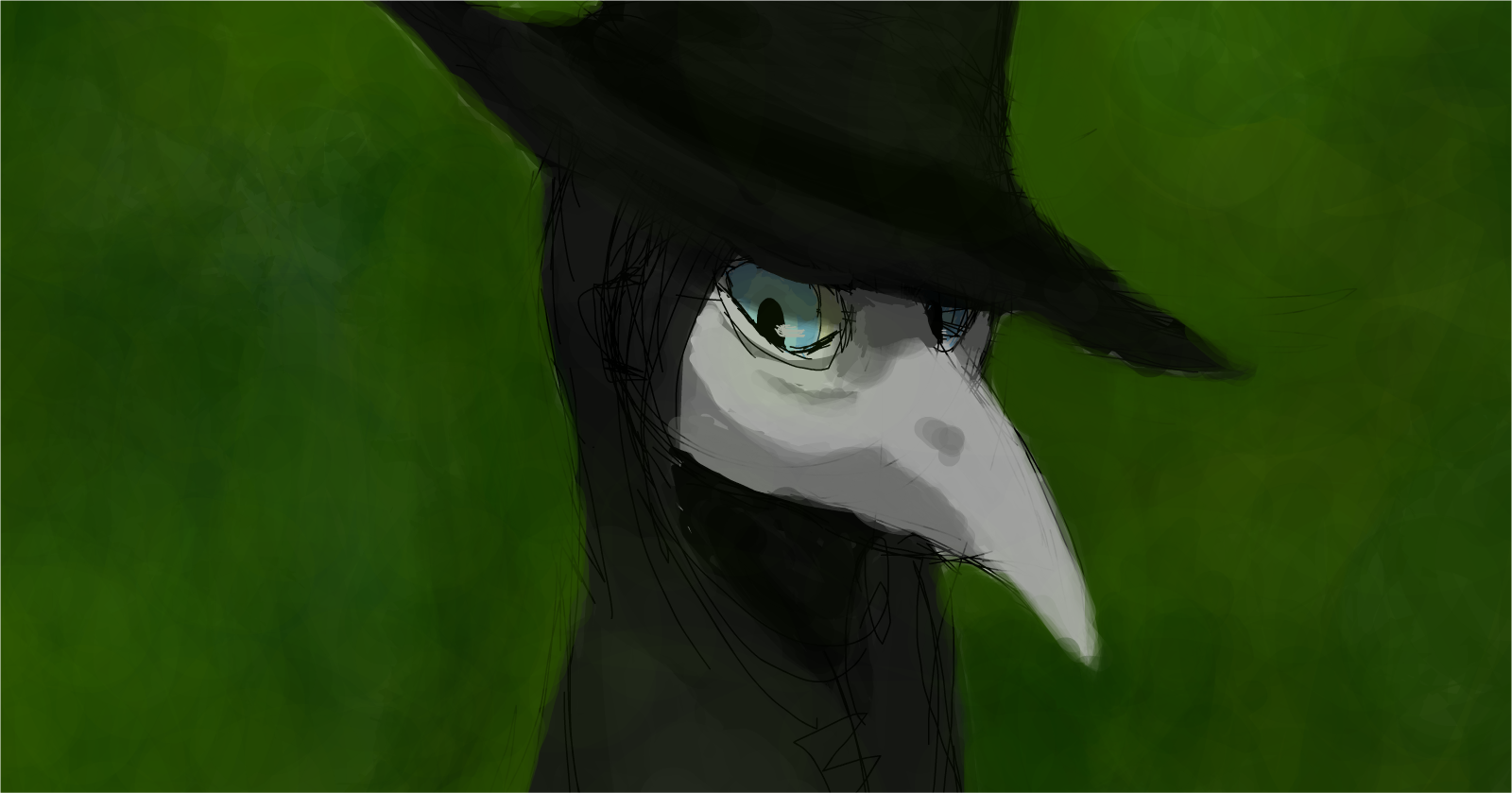 A colored sketch of Meijer, another character of mine who happens to be a plague doctor. "Do not be afraid. I am the cure."