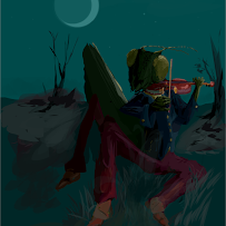 By the light of the moon and with warmth of the fire, he played a little tune—down in the mire...