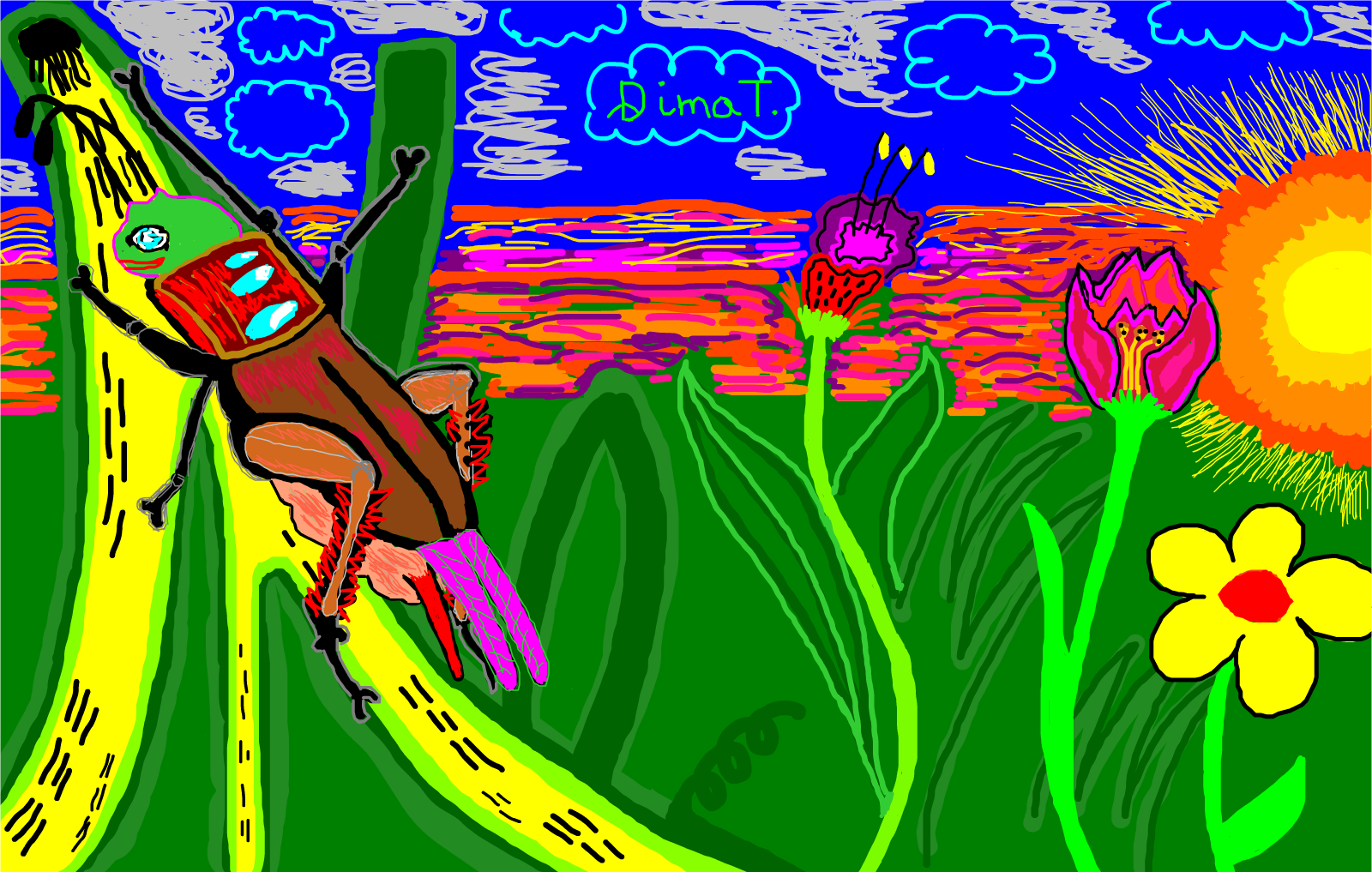 Insect sitting on a banana peel, Nature in while too resting...