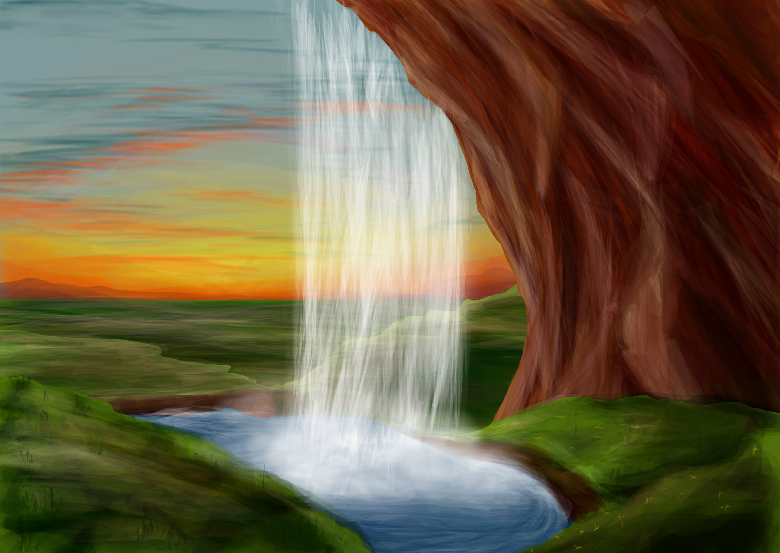 This is a revised version of the original.The crooked waterfall was bothering me lol. Enjoy :3