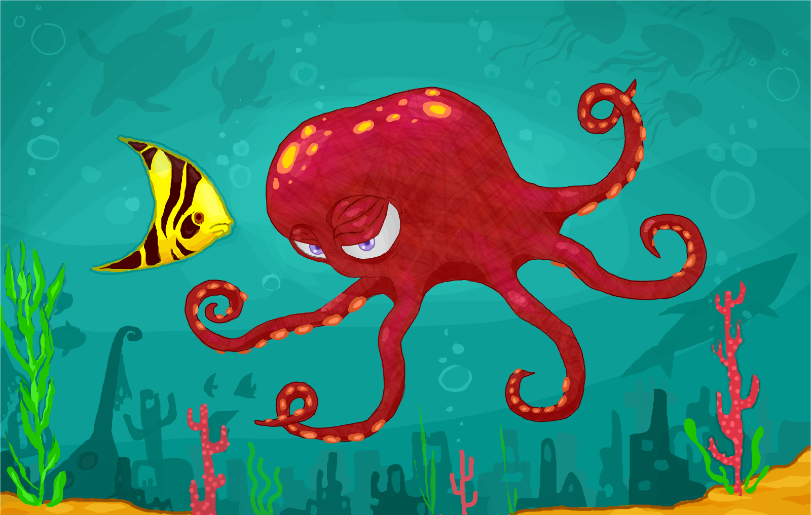 originally by "Rebeccarawrr" Outline of a five-and-a-half-tentacled octopus When I first saw it...