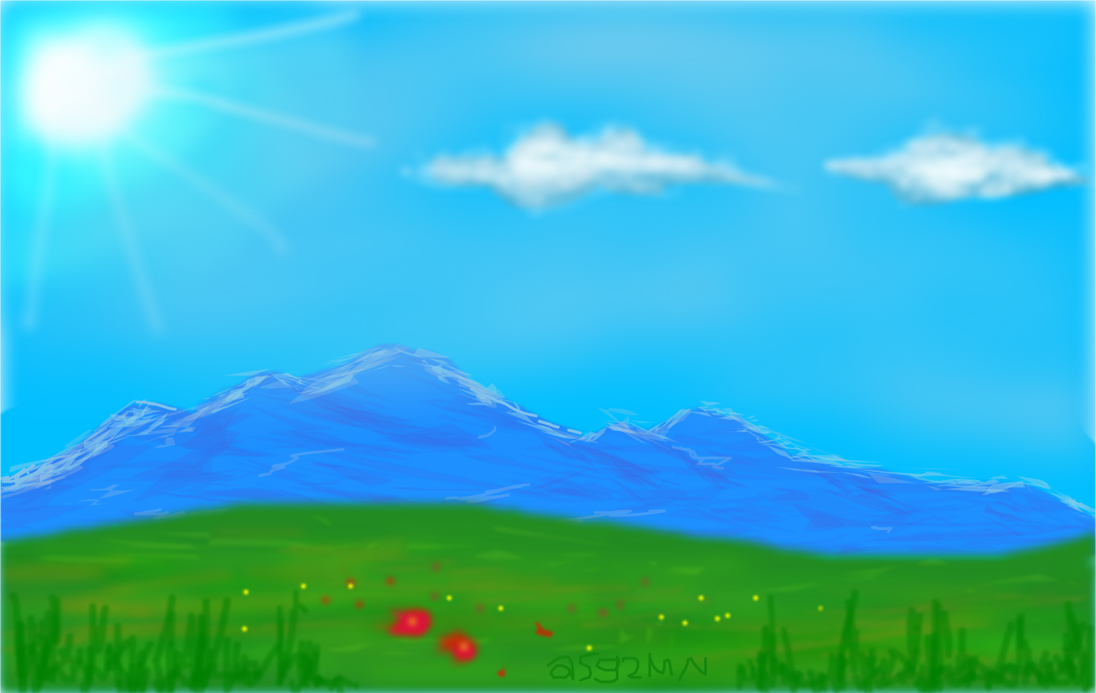 Thanks to Magicalhobo-san, after looking at his drawing, suddenly wanted to draw landscape too. I saw the original version of my drawing somewhere in internet before, then I tried to draw without looking at reference, because I'm lazy to search it again. Seems like my memory is bad -_- It doesn't look like original one, maybe.