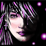 if i can criticize a bit : maybe you could have made those fireflies more or less luminous. as it is i find it looks a bit flattened, because they're all the same intensity, and the face is so well worked with a lot of tones... i hope you see what i mean.