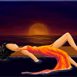 If i drew it, i would have had her looking at the sunset, so I didnt have to deal with the face. I like the hand and foot in the water too.