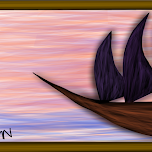 "This picture was drawn from a black and white silhouette. The colours used on the ship and on the background are the same, but because they are on white on the background, and black on the ship, they look very different"