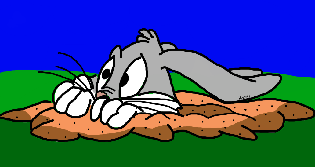 Bugs Bunny scared in a hole.