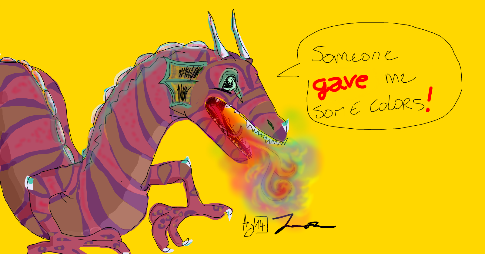 Coloured version of Mouldy Sponge's drawing: the abomination